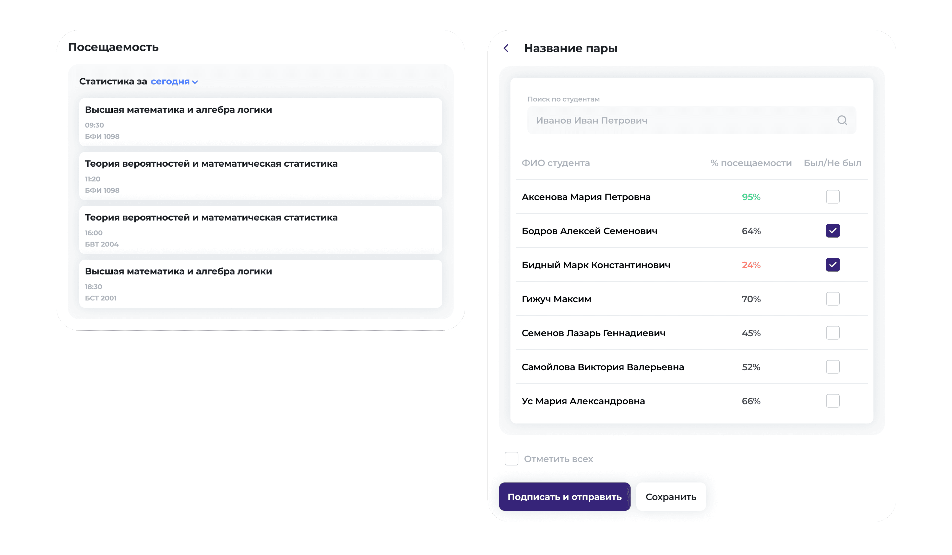 Сделал полноценный раздел с онлайн-запросом справок, подписанием ведомостей преподавателями и отслеживанием статусов. Автоматически синхронизируется с 1С.